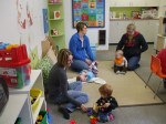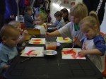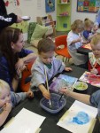 This month at the play room is Art Month – a series in creative exploration. This past Tuesday afternoon & Wednesday morning was filled with a story read to the kids called “The Dot”, and then the kids did some creative exploring with water coloring painting! A very creative, fun, and only slightly messy time!