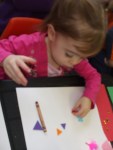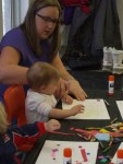 We enjoyed a book by Eric Carle called the Grouchy Lady Bug. Following some singing and dancing the kids sat to do their own collage. This is part of our January theme ~ Art month!