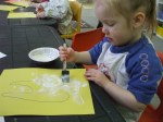 Our simple craft was to clean those yellow teeth and make them white again! (white paint & a paint brush did the trick for these yellow teeth!)