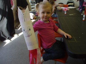 Along with our yummy healthy snack, we had some fun putting together our own rabbit wind socks.