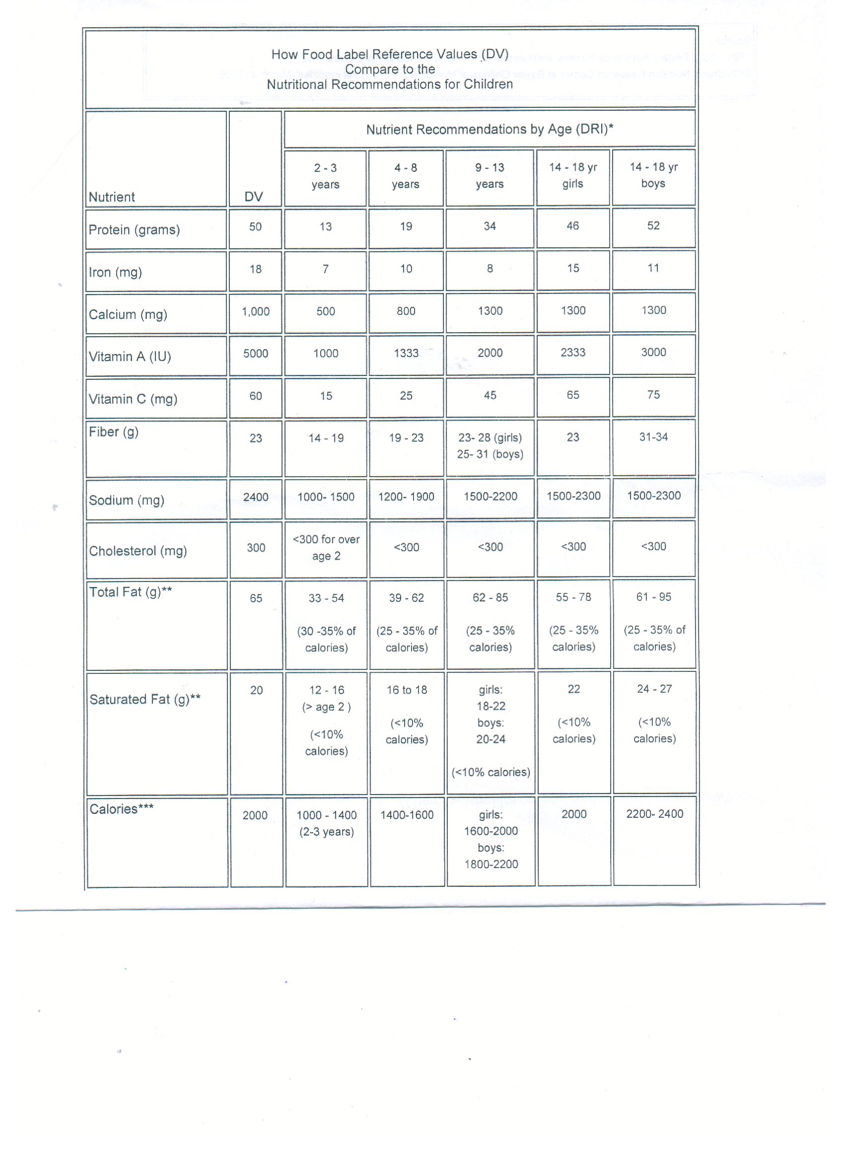 2. Consider Calories – 400 or more calories per serving is high. Challenge your child to keep track of the calories he or she consumes throughout the day.