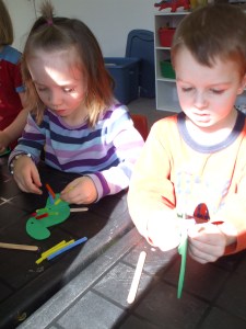 There are a wide variety of activities that a family could do with this fun story. This past week we did two activities. The first one being: Making our own hungry caterpillar puppet.