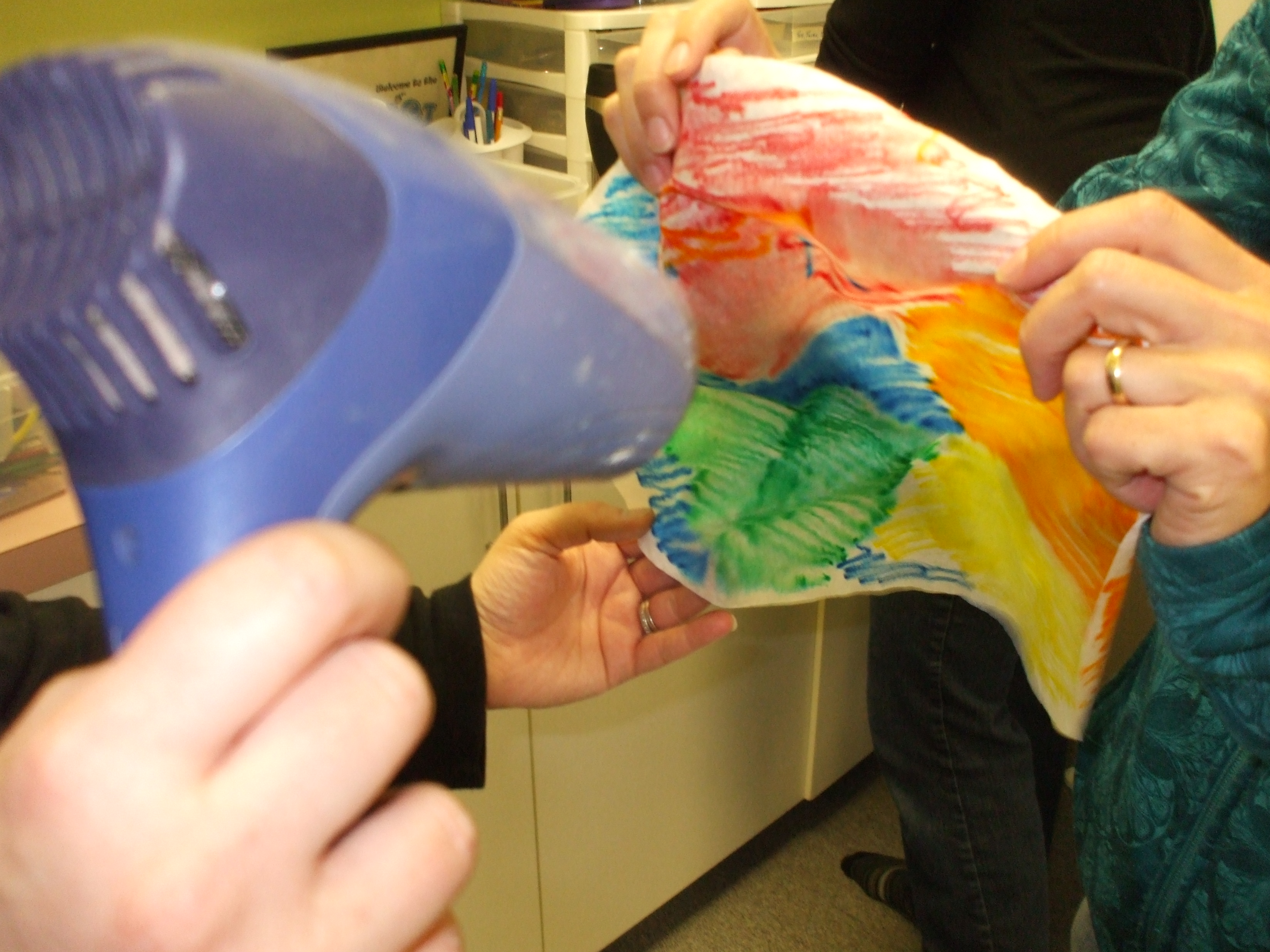 4. And to go along with the raindrop theme ~ spray the colored coffee filter with water