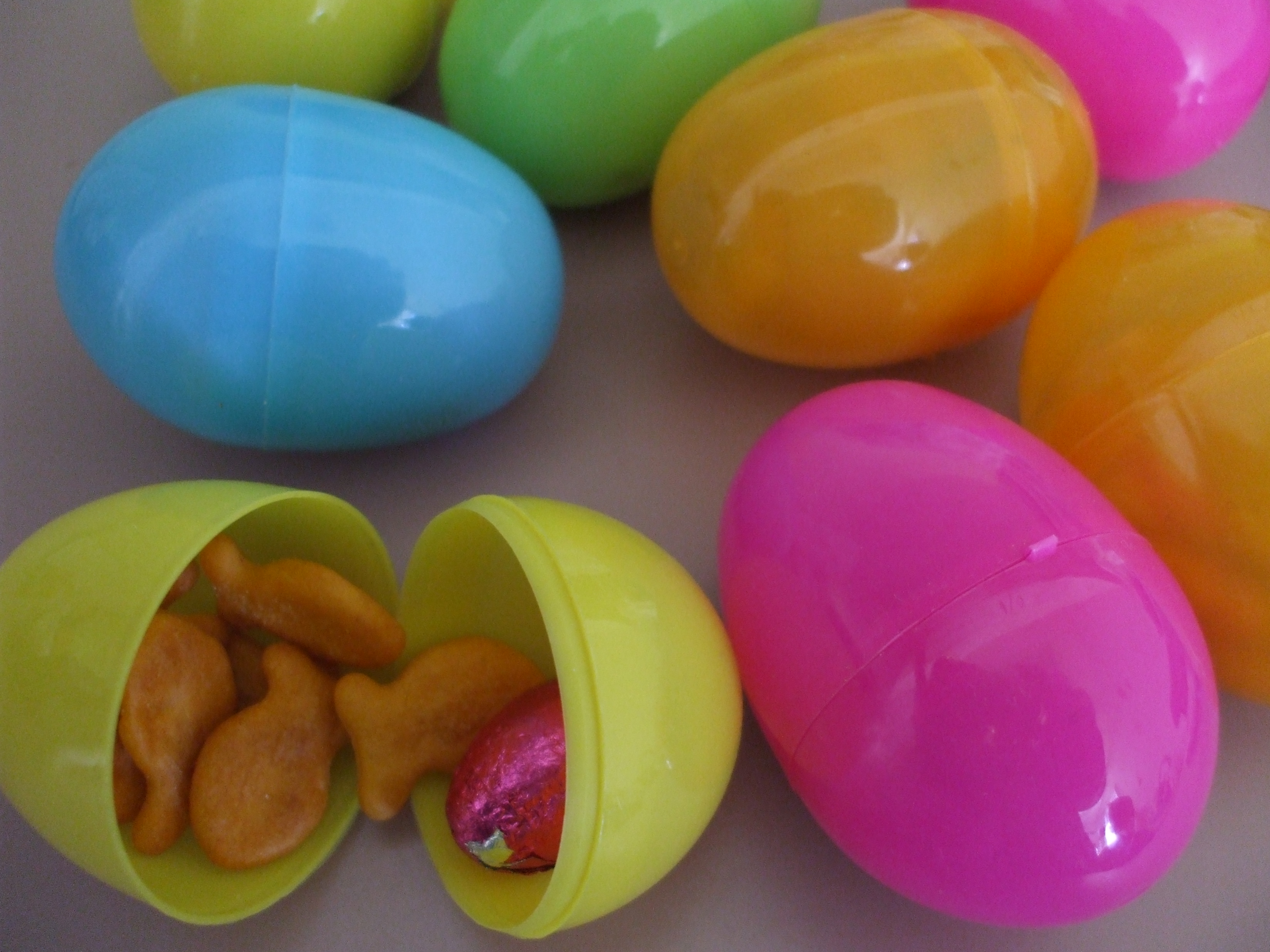 Instead of the typical Candy in the Eggs next year try filling a few with a more suitable non-teeth rotting substitute! Gold Fish most kids love goldfish! Be creative a random surprise chocolate will still make it exciting to them. They do not all need candy. In our house hold we have gotten lager eggs as well to put little trinket toys in or tiny cars kids love them just as much as the candy!