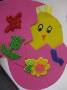 Glue the egg and chick together like in the picture and have your little one decorate the eggs and create the face. Let them be creative! if they are not so good with faces help them or use goggle eyes you make that choice. Do what you wish to make it your very own. You can glue a magnet on the back for the fridge! so many choices and Ideas get creative!