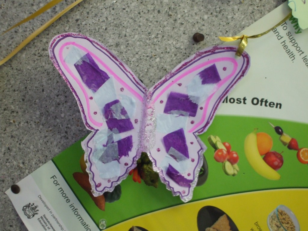 Insects Tissue paper and glue can always be a simple craft. One could make all sorts of creatures, we decided to make some beautiful butterlies. As well as enjoying a few different books about the bugs in the garden! Share this: Click to print (Opens in new window) Print Click to email a link to a friend (Opens in new window) Email TweetMore Click to share on Reddit (Opens in new window) Reddit Like Loading... Related Published by cfycoordinator Program Coordinator for CFY Family Centre Carlyle, Sask View all posts by cfycoordinator