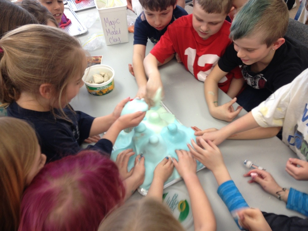 Last week at the Carlyle Public Library the Grade 2-3’s made some fantastic erupting volcanos! To start each student was given a small glass bottle and some clay. (Since we had a class of 33 we used a variety of clay to make different looking volcanos: Crayola Model Magic, Crayola Air Dry Clay and No-Name brand Modelling Clay.)