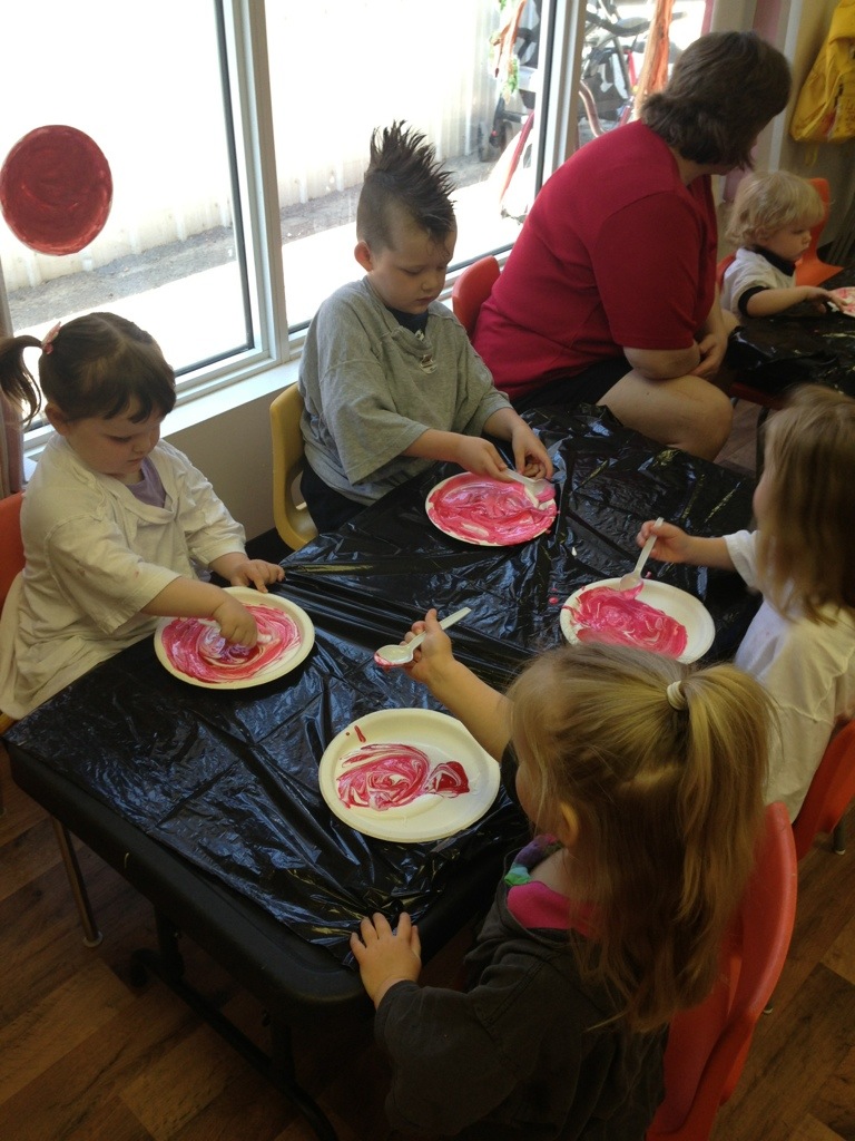 We had a great turn out for our Literacy Day this week. The book was “Olivia Blasts Off” and we did space crafts. On Tuesday we made UFOs out of tart tins. On Wednesday it was all about being messy and we made the “red planet” with puffy paint. We gave out bags to 9 families that each contained a book, crayons, stickers and colouring sheets. Thanks also to Constable Wilkinson for stopping by and giving the kids stickers as well. It was a great day in the playroom!